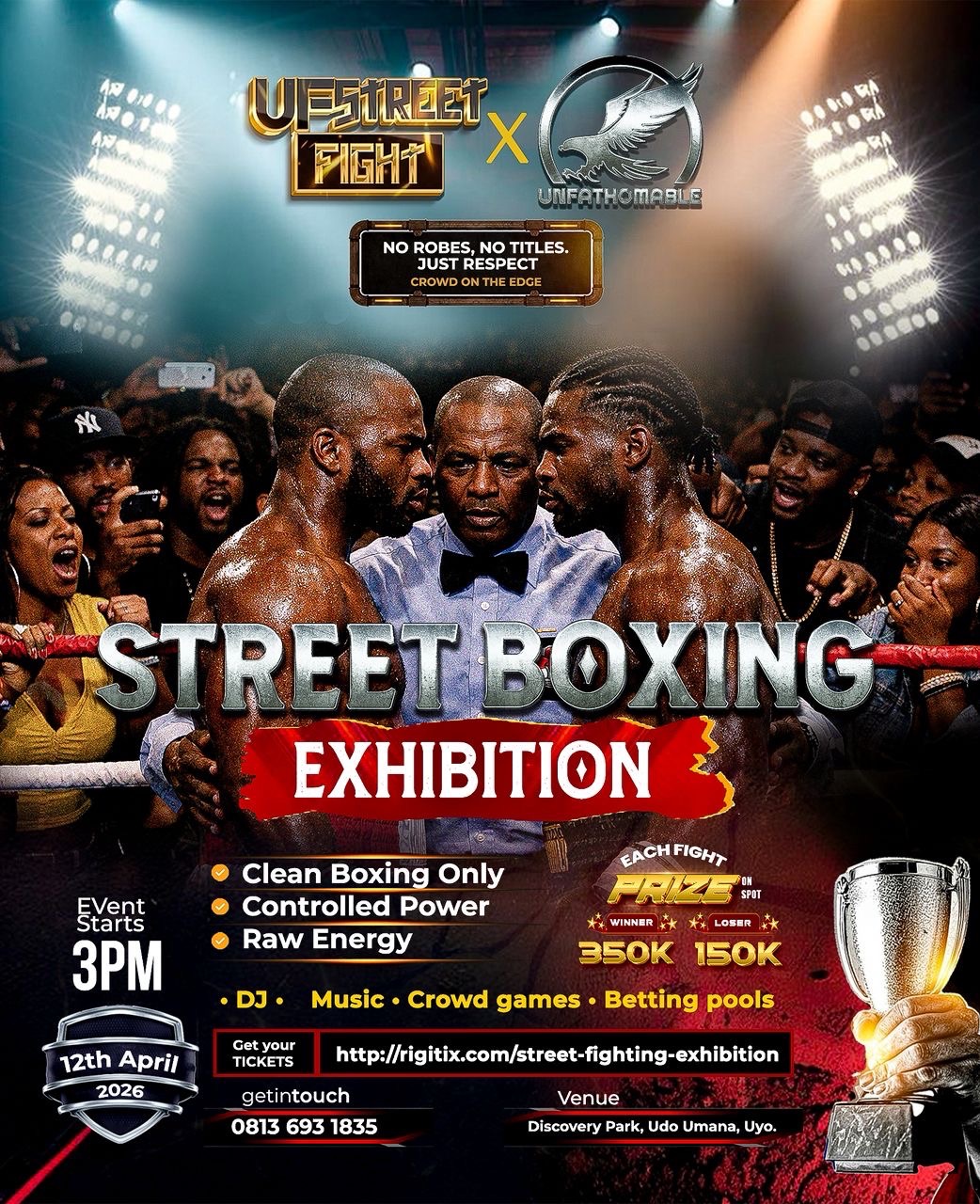 Scheduled for Sunday, April 12, 2026, at Discovery Park, Udo Umana, Uyo, the event promises a high-adrenaline experience where fighters step into the ring not for titles, but for respect, pride, and instant rewards.