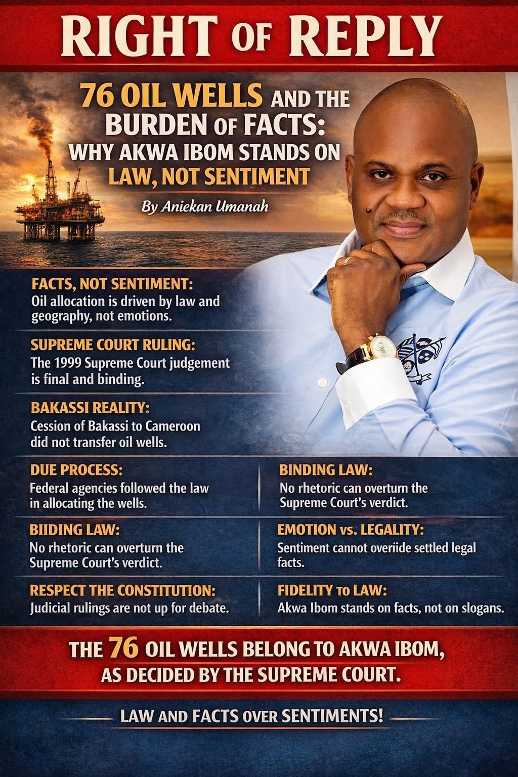 RIGHT OF REPLY: 76 OIL WELLS AND THE BURDEN OF FACTS. WHY AKWA IBOM STANDS ON LAW, NOT SENTIMENT